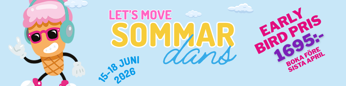 V. 25: 15–18 juni Sommardans kl. 9.00–15.00 – fyra dagar fyllda med dansglädje där du får testa olika stilar och ha kul med oss!